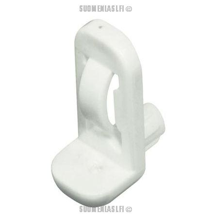 Hyllynkannake enintään 6 mm lasihyllylle varmistimella painettavaksi 5 mm porausreikään.