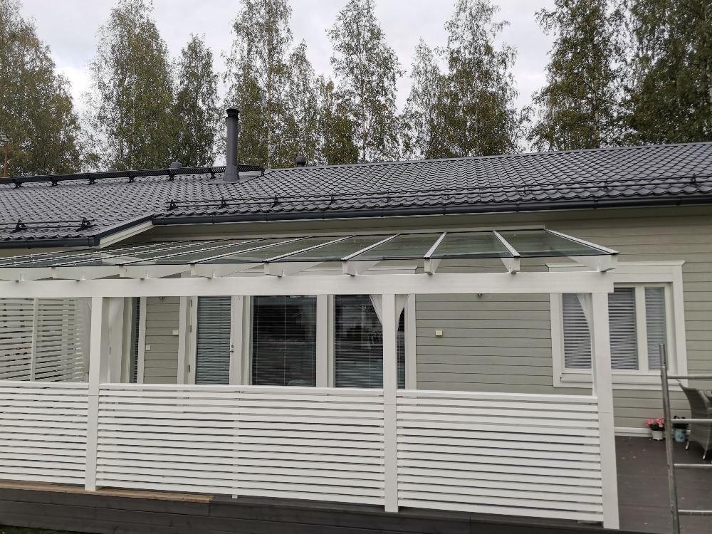 Kattolasitus on kestävä ratkaisu terassin kattamiseen, sillä kattolasit kestävät hyvin sään vaihtelut ja talven lumikuorman.