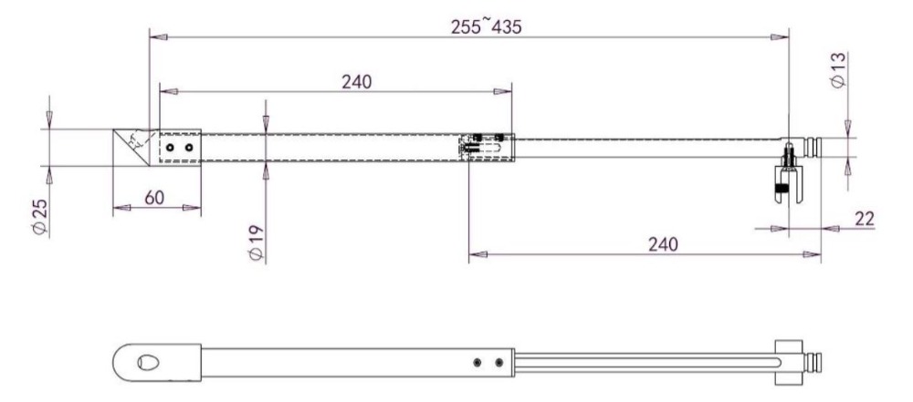 Tangon toinen pää kiinnitetään talon seinään 45 asteen kulmassa lasiin nähden