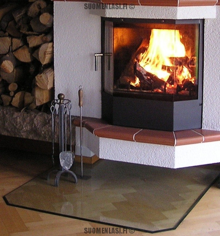Laita kestävä takaneduslasi perinteisen pellin sijaan takan eteen lattialle. Lasi on paloturvallinen ratkaisu, joka on 6mm karkaistu lasi ja reunat hiottuna. Etukulmat pyöristetään ettei varpaat kolhiinnu.